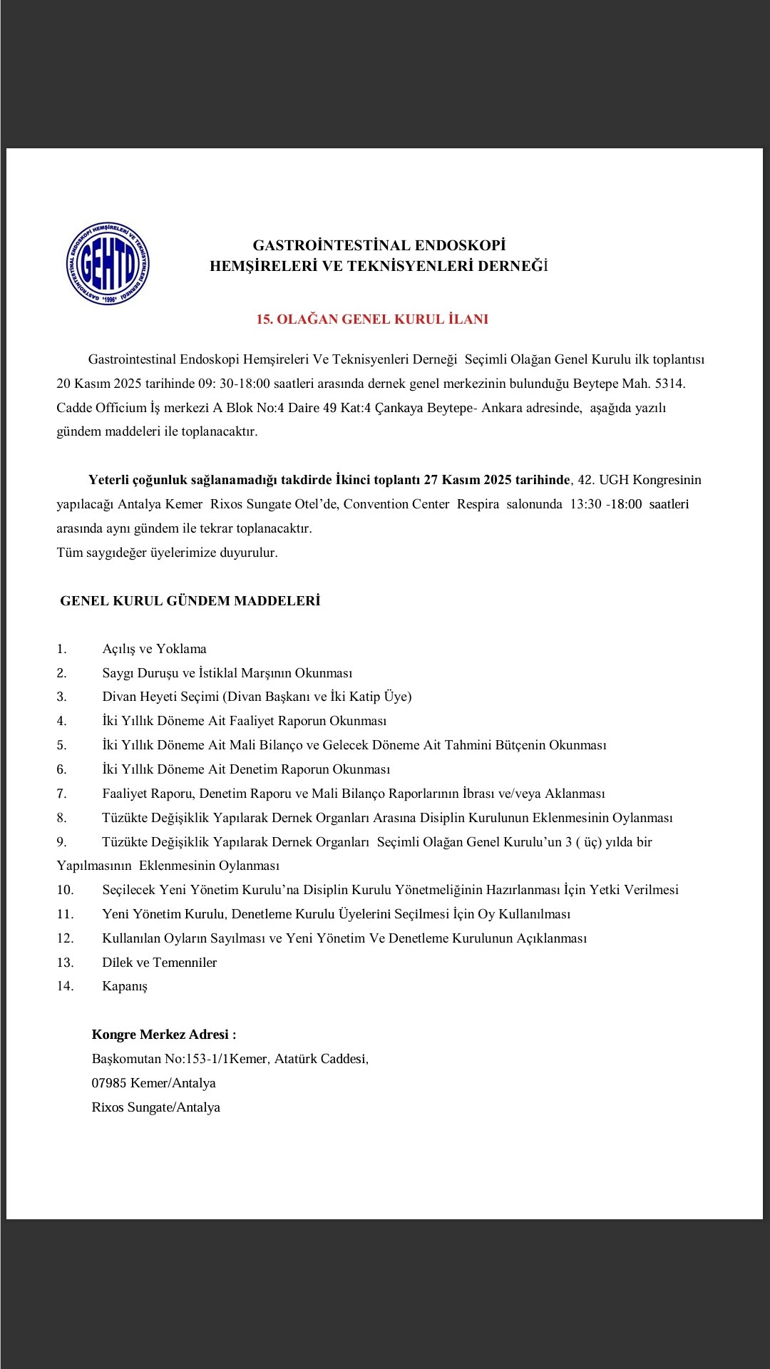 Endoskopi Hemşireliği Standartları Kılavuzu 1.Çalıştay 1. Oturum